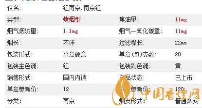 南京香烟最早诞生于中华民国时期的南京光明兄弟烟厂。经过不断的完善和成长,如今的南京香烟有很多种。2008年南京香烟成为全国性卷烟重点骨干品牌之一。而南京(红)是最受人们喜爱的香烟之一。无论是从口感还是从价格,都符合普通平民老百姓的心!下面我们将对南京(红)的价格、口感、参数等做相关介绍!