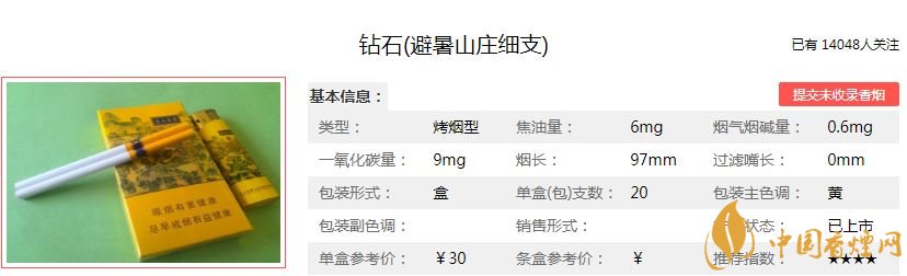 以上是避暑山庄钻石香烟的价格及口感分析,希望为烟民提供帮助。你还知道有哪些钻石避暑山庄香烟,欢迎在下方评论区留言。想查询更多香烟信息,请点击:钻石避暑山庄价格表 钻石避暑山庄烟有几种