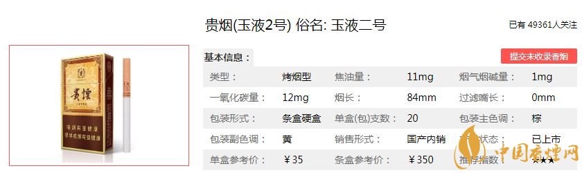 贵烟玉液2号价格参数: