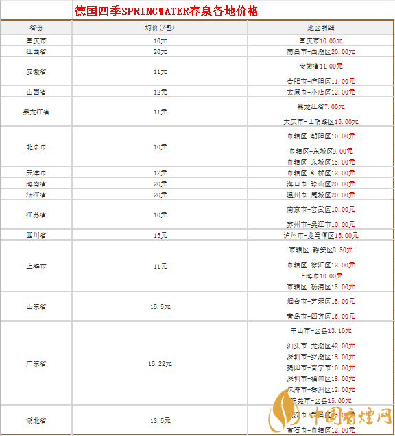 德国四季SPRINGWATER春泉各地价格参考价格 ¥10 |¥100