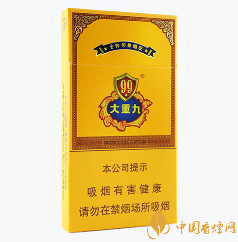包装特点:秉承云烟传统尊贵典雅和大重九系列简洁、醒目的风格,分别以黄色和浅黄色为主色调,点缀红蓝相配的重九经典标识,以先烫后印的工艺,表达出古典式的尊贵,突显百年重九经典风范。商标采用三维全息防伪技术和二维码防伪技术结合,独具魅力的接装纸一体化设计以及双重压纹铝箔纸的搭配,更具尊贵不凡的气质。