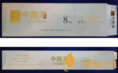 中南海(金8mg)由上海烟草(集团)公司北京卷烟厂生产,卷烟规格为(25+59)mm×24.6mm。