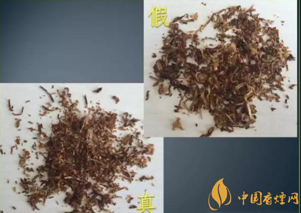 假冒卷烟:烟丝含水率低,切丝不均匀,烟丝结构不正确。