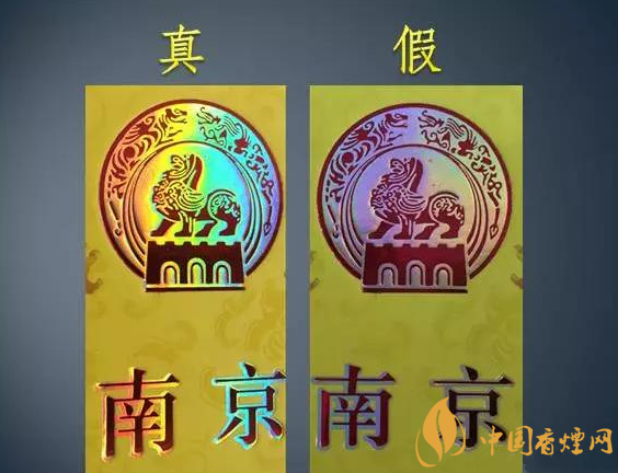 南京(九五)香烟真假主要从条盒图案、南京字体、条盒侧面、条盒内部、小盒顶部镭射全息图、小盒内衬纸、接装纸及滤棒、烟丝这8个方面来辨别。