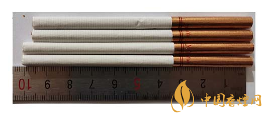 四、烟支烟丝真假对比真品卷烟:烟支长度为100mm,滤嘴处有四排激光预打孔,打孔透气度好。卷烟纸颜色白,手摸烟支饱满紧实,搭扣处结合完美。烟丝呈现丝条状,色泽基本一致。