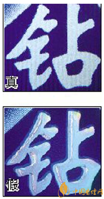 五看钻石图案:真烟钻石图案印刷清晰,色彩感强,内有微缩英文字母“DIAMOND”,图案无凹凸感;假烟印刷不清晰,用手摸上去有凹凸感。