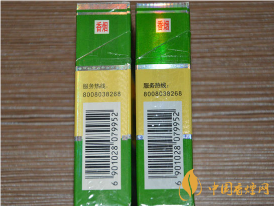 条形码背景白色明显发暗灰,同样上方香烟二字字体粗大颜色较深。