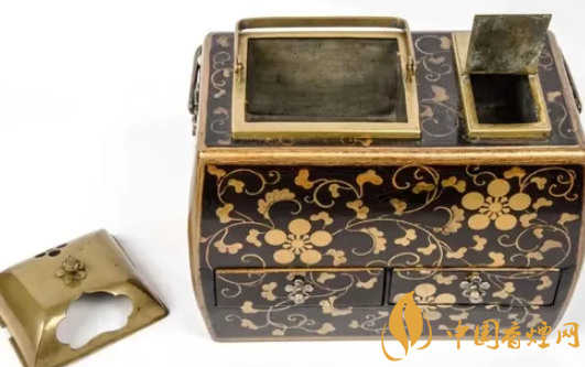 烟草盆种类烟草盆主要有两种形式——箱式和篮式。篮式烟草盆比较简单,就是一个托盘与一个提手;而箱式的烟草盆往往注重装饰比较华丽,除了顶部的托盘,下面还有很多小抽屉便于收纳用具和器皿,看起来相当讲究。