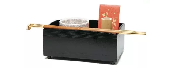 武者小路千家与表、里千家最大的区别:就是会使用香箸,香箸放在灰吹的右手边。