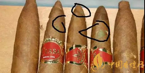 其他非古巴地区的雪茄茄衣,大部份都是采用Connecticut方法,在烟叶的外表涂上化学添加剂,然后放进机器里焗干,这种方法可以节省制干时间,也避免绿叶素在转化成叶黄素的时候不完全。因此,多米尼加、洪都拉斯等生产的品牌雪茄茄衣中小绿斑比较少见,但这样做,茄衣的颜色及干湿度就可以很一致,但是味道和质感却失真,而且,这种方法造出来的雪茄,馀韵都隐约有点儿苦涩。 因此,古巴雪茄中的小绿斑,也可以彰显古巴纯天然无添加剂的特性。