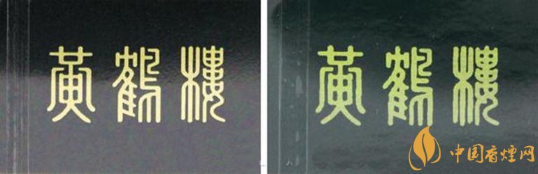 盒包侧面“黄鹤楼”文字对比:真品卷烟字体清晰,文字边缘呈规则锯齿形。假烟文字粗糙,文字边缘无锯齿,有毛刺。