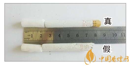 真烟烟支滤嘴长24毫米;假烟滤嘴一般长20毫米。