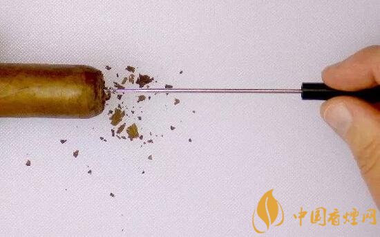 通气针样子很简单,就是一个带有把手的细长的金属针,有些针的头部带有螺旋或者锯齿。使用的时候一手拿着雪茄,一手拿着通气针,用针插进雪茄头部稍微旋转一下,插进去的深度一般到雪茄中部就可以了,根据透气情况,可以多插几次,一般透气性就能有很好的解决了。那种头部带锯齿的通气针虽然对通气有比较好的处理,可是非常暴力,几乎是在雪茄内部旋出一个洞,一般情况还是建议不要使用。