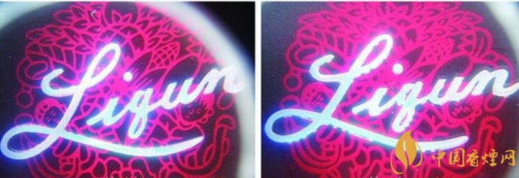 1.真烟小包背面“Liqun”拼音镭射边缘光滑清晰,而假烟则边缘不光滑,有银色渗入红色图案部分。