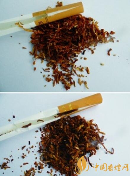 真品烟支滤嘴棒25mm,烟丝颜色为金黄,烟丝弹性好,添加中草药提取物“丰和液”,具有特殊香味;假烟烟支滤嘴棒只有19mm,烟丝含末量大,烟丝颜色多为褐黄色,烟丝添加大量化学香精香料,香味刺鼻,与真品存在明显差异。