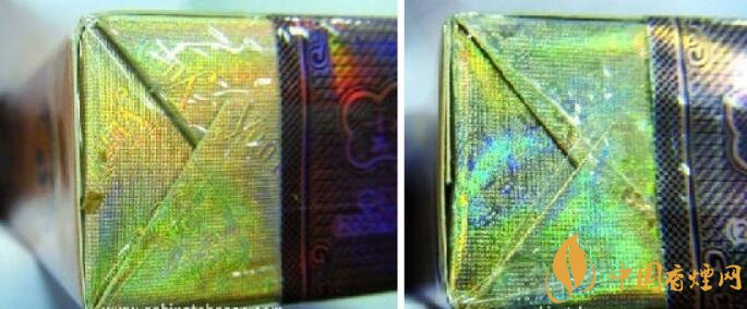 真品小盒商标纸采用专属高端特供进口材质的纸张,适用于软包硬化包装工艺硬度材质,颜色以黄金色为主色;假烟小盒商标纸是普通材料,纸质低劣,比较薄、没有硬度,颜色呈现出淡黄色,与真品颜色差异明显。
