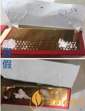 真品卷烟侧边有一条与侧边平行的机器压痕;假烟采用手工烫封,没有机器留下的压痕。