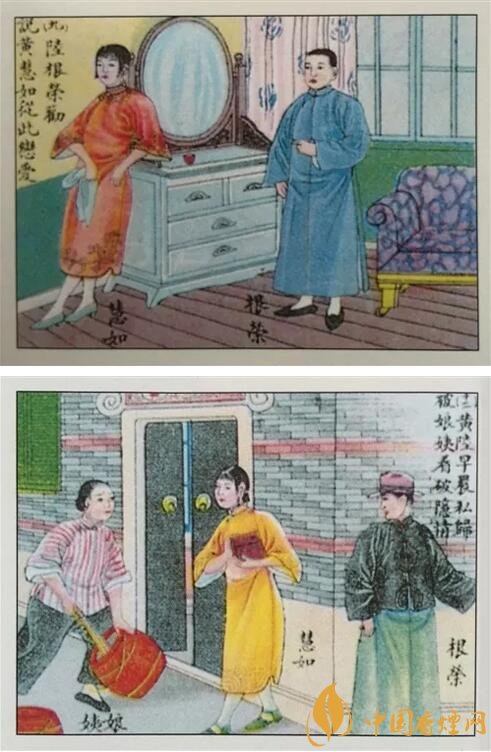 这套卷烟画片根据1928年轰动全国的一起感情事件改编。黄慧如与陆根生的爱情故事是当时轰动沪上的著名案件之一,各大报纸争相报道,以之为题材的书籍、新剧、电影、评弹等数不胜数。卷烟厂商自然也不甘落后,争先恐后出品了这一热门题材的卷烟画片,收效颇丰。同期,有些卷烟厂商还出品了“黄慧如”烟标。