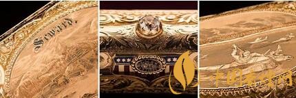 雪茄盒主体由黄金制作,细节上包括刻字SEWARD,一颗宝石和美国国旗图案,以及美国原住民妇女的狩猎场景。一笔最重要的交易,一段历史就完整的呈现在一个雪茄盒上了。想要了解更多内容请点击:西班牙代理商推出了中国猪年高希霸生肖雪茄