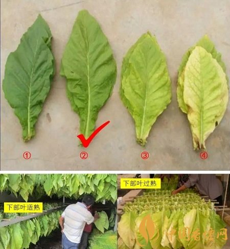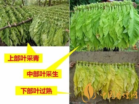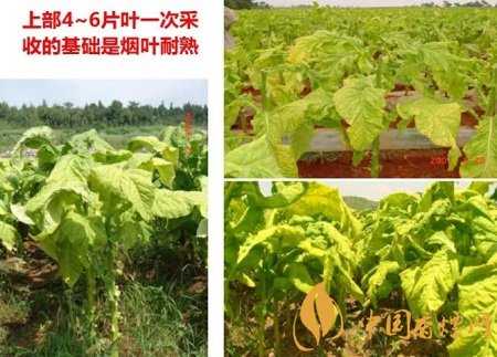 下部叶适时采收,中部叶成熟采收,上部叶充分成熟后4~6片一次性采收,上面2~3片和下面2~3片封开装炉的原则。