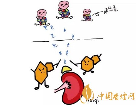 香烟中的尼古丁会刺激体内的肾上腺素分泌,直接导致血糖波动。还可促使周围血管收缩,减少对胰岛素的吸收,同时释放拮抗胰岛素作用的物质增加,降低了胰岛素的作用。