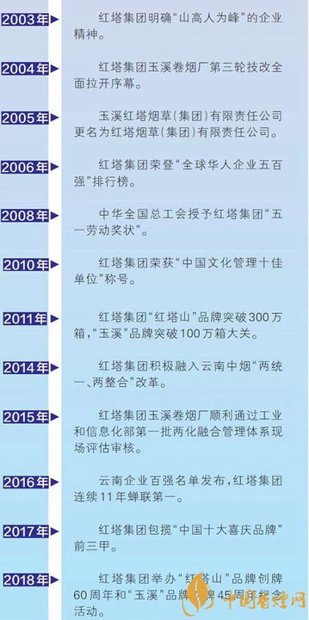 进入21世纪,“市场是第一车间”战略的实施,让红塔从管理思想、机构设置到生产运营再到营销推广进行了深化变革。这一变革的成效在2005年得到印证,这一年,玉溪红塔烟草(集团)有限责任公司更名为红塔烟草(集团)有限责任公司,“红塔山”品牌止跌回稳,“玉溪”品牌实现跨越式发展;