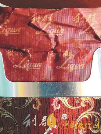 看顶部文字:真烟有钢印,且深浅不一,数字或字母印刷粗细有别,“利群”二字为暗朱红色,与底色融合度高;假烟无数字、字母组合钢印,“利群”二字为亮红色,且印刷死板、浮于表面。