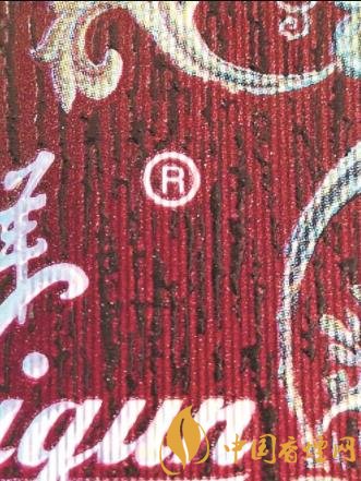 看正面注册商标:真烟小盒正面注册商标图案清晰明亮,外围轮廓柔和,为完整的圆形,无锯齿、无断裂;假烟小盒正面注册商标图案较为暗淡,外围轮廓模糊,与背景图案交叠错印。