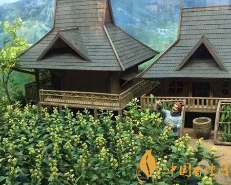 在中国烟草博物馆农业馆中,有一个以云南吊脚楼为背景设计的雕塑场景,展示了香料烟在当地种植(如图)、采摘、晒制、分级加工的过程。