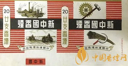 中国建新烟厂出品于上世纪50年代的“新中国”烟标(图6),主版为鳞次栉比的工厂、农民驾驶拖拉机耕地两幅画面,副版以锤头和齿轮,以及镰刀和收割的稻麦,彰显出从此当家作主的中国人民,在工农业并重的建设大潮中,热火朝天工作于各自岗位上的喜悦之情。