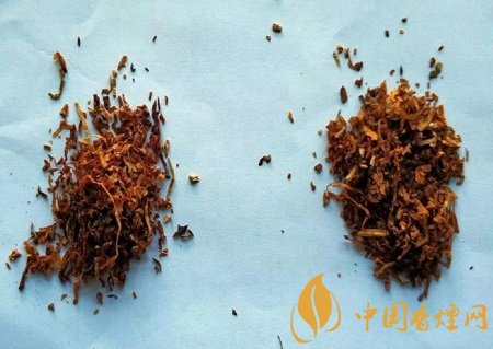 真烟:烟丝成丝率高,无膨胀叶丝和膨胀梗丝,有造纸法再造烟叶。(左真右假)