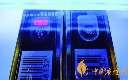 真品小盒商标纸选用光柱镭射卡纸,采用凹凸烫金一次成型技术,小盒正面商标图案和字迹清晰且凹凸感明显,烫金部分光滑无格纹状;假烟小盒仿制粗糙,烫金套印不准,商标图案部分仿印有明显的格纹状,与真品印刷工艺存在明显差异。(左真右假)