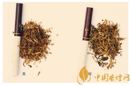 真烟烟支采用复合滤嘴,烟丝切丝宽度均匀,烟丝疏松、光泽油润性好、呈柠檬黄色,烟丝结构为叶丝和少量膨胀梗丝;假烟烟支采用普通滤嘴,制丝工艺简单,烟丝宽度不均匀,有少量梗丝,未经过膨胀处理。