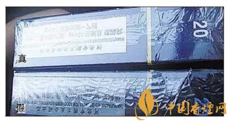 真烟压边准确,印刷清晰;假烟烫金粗糙。