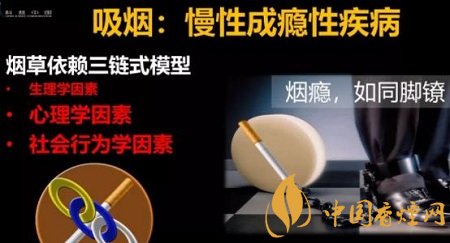 但是烟草成瘾不是单单只有生理学因素,不然,中国就不会有3亿吸烟者,不会十年吸烟率几乎没有变化。实际上,在戒烟的过程中,比克服生理学因素更难的是心理学因素和社会行为学因素。烟瘾如同脚镣,拴在人身上很难摆脱。