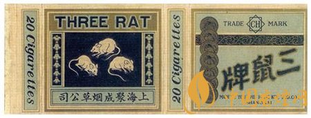 上海聚成烟厂出品于同期的“三鼠”烟标,凸显了三只老鼠各具情态地仔细寻找食物的画面。
