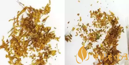 真烟的烟丝切丝均匀、碎末少,油润性好,看上去呈金黄色;假烟的烟丝杂质多、油润性差,看上去颜色较淡。