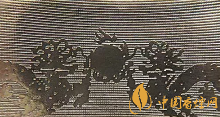 真烟小盒正面龙纹和松枝印刷清晰,色彩饱和度高,有立体感;假烟小盒正面龙纹和松枝印刷模糊,无立体感,且有粗糙圆形图案。(上真下假)