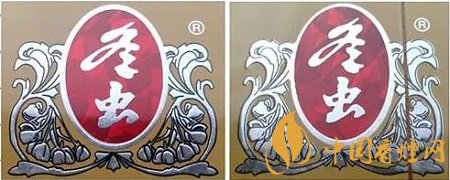 真品卷烟采用起凸工艺商标印刷,图案细节起凸完美,眼观、手摸凹凸感明显。该款假冒卷烟商标印刷起凸工艺较差,部分细节未做起凸,手摸图案平滑。(左真右假)