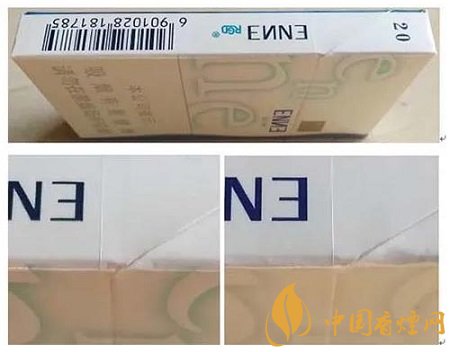 (4)真品卷烟“enne”小写字母笔画立体感强。该款假冒卷烟小写字母笔画无立体感。