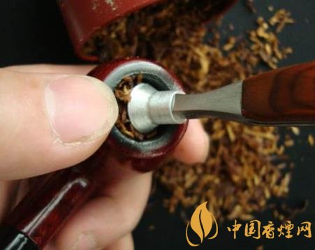 新晋烟斗爱好者最适宜的是采用分层法装烟草,即将烟草分成五份,第一步装五分之一,用婴儿之力将草放平均,保持松散状态;第二步装五分之三,用少女之力将草均匀地放入;第三步装五分之一,用男人之力,使草保持平实,再用压棒轻轻压平,然后点燃。分层法装填,可以使烟草及烟斗保持良好的通透性,既抽吸顺畅又养斗。请记住,装填烟草最多不能超过斗钵80%的位置,否则容易烧灼烟斗上沿。