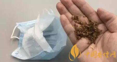 第三,口罩其实是有三层的,打开其中一层放入香烟,另一层加入一些食用盐,再用口罩中的钢丝条把缺口的一端固定住。