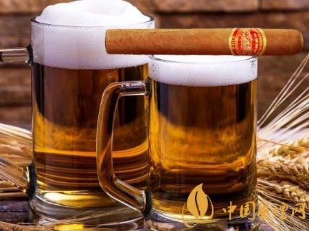 啤酒是以小麦芽和大麦芽为主要原料,并加啤酒花,经过液态糊化和糖化,再经过液态发酵而酿制成的,啤酒中的低分子糖和氨基酸很易被消化吸收,在体内产生大量热能,因此往往啤酒被人们称为“液体面包”。清爽刺激的啤酒遇上丰富香盈的雪茄,其另类特别的搭配深入人心。例如:黑色啤酒搭配长城雪茄,其色泽呈深红褐色乃至黑褐色,麦芽香味突出、口味浓醇、泡沫细腻,搭配浓郁型雪茄十分特别。雪茄的特质在凉爽的酒中表现出来,其口感深厚而悠远,并带有令人愉悦的风味,令疲倦顷刻消散。