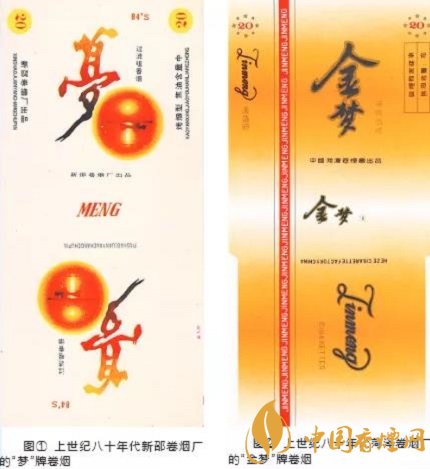 如新邵卷烟厂的“梦”(见图①),菏泽卷烟厂的“金梦”(见图②),贵定、海林卷烟厂的“梦圆”(见图③),兴义卷烟厂的“梦归”,许昌卷烟厂的“梦幻”,安阳、当阳卷烟厂的“蓝梦”,蓬安卷烟厂的“蓝的梦”,绵阳卷烟厂的“九寨沟梦幻”,阜阳卷烟厂的“东方梦”,铜仁卷烟厂的“梦中情”,太原卷烟厂的“梦佳丽”,红安卷烟厂的“梦之花”,四平卷烟厂的“梦妮”,凤凰卷烟厂乾州分厂“梦斯”等。另一类是取材于古代文学作品和传说。如南京卷烟厂的“梦都”,新晃卷烟厂的“红楼梦”,钟山卷烟厂的“梦”,广水卷烟厂的“黄粱梦”,长春卷烟厂的“梦仙草”,许昌卷烟厂的“梦蝶”等。