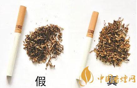 假烟烟丝工艺粗糙,色泽发暗无光泽,含碎末较多,烟丝结构一般为叶丝和没有经过膨胀处理的梗丝,无造纸法再造烟叶。