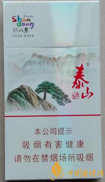 这款烟是由山东中烟公司生产出来的,在外包装色调上为黑色,设计上取泰山三大奇观之一泰山佛光,拥有泰山的深厚儒家文化为理念,并将泰山风光置于其中。市场上每包售价为42元,烟长97毫米,焦油量为5毫克。