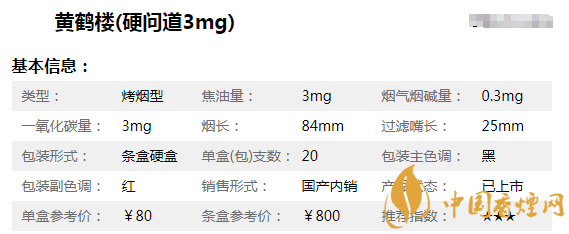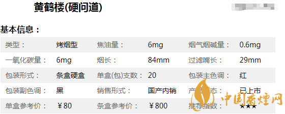 黄鹤楼问道价格品种 规格 包装 单包支数 焦油含量 单包价格