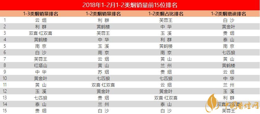 一边是三类烟在绝大部分市场价值感与成长性的「双重消解」;另一边是一、二类烟持续的扩容上量,逐渐成长为规模与结构的「双重支撑」。2017年,全国一、二类烟销量1761.3万箱,同比增长10.4%,市场份额达到37.2%,同比提高个3.2百分点;今年1、2月,一、二类烟销量480.6万箱,同比增长17.9%,市场份额达到52.4%,同比提高3.6个百分点。