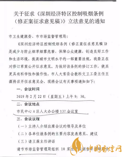2月22日,《深圳经济特区控制吸烟条例(修正案征求意见稿)》立法意见会议在市民中心召开,中国电子商会电子烟行业委员会秘书处受深圳市人大常委会教科文卫工作委员会邀请参加。
