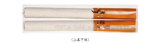 真烟烟支过滤嘴长度为24mm;假烟烟支过滤嘴较短长度约为18mm,与真品烟支存在明显差异。
